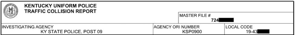 For a typical accident involving two cars, the Kentucky Uniform Police Traffic Collision Report will consist of four or five pages. Here’s a sample from a real collision, with identifying information redacted: